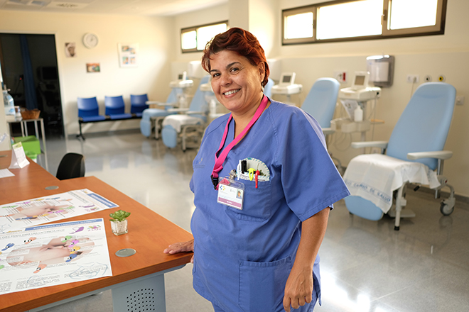 Loly Mesa es comadrona del Hospital de Fuerteventura y presidenta de la Comisión de Lactancia del Área de Salud de la Isla. Junto a un equipo de profesionales sanitarios trabaja para que Fuerteventura sea IHAN (Iniciativa para la Humanización de la Asistencia al Nacimiento y la Lactancia), un proyecto lanzado por la OMS y Unicef para animar a los hospitales, servicios de salud y salas de maternidad a adoptar prácticas que protejan, promuevan y apoyen la lactancia materna de forma exclusiva desde el nacimiento.