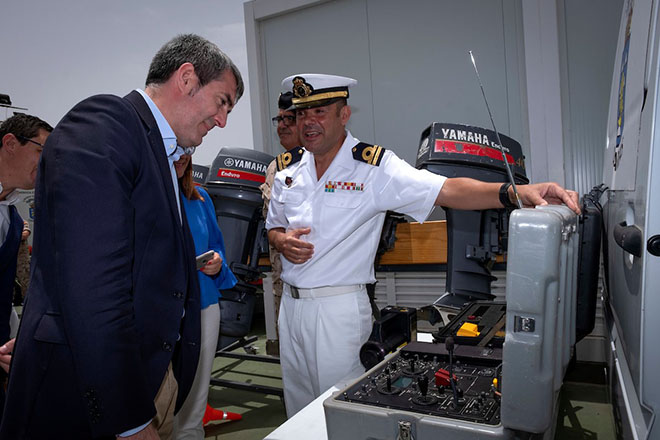 Antes de concluir la visita a la Base Naval, Fernando Clavijo quiso reiterar su agradecimiento y destacar, una vez más, la profesionalidad del Ejército español. "Contar en esta ocasión con el equipo de buzos de la Armada o contar, como tantas veces hemos hecho, con la Unidad Militar de Emergencias es una garantía de tranquilidad y nos hace sentir orgullosos de un Ejército moderno, bien formado y capaz de afrontar con éxito cualquier tipo de emergencia".