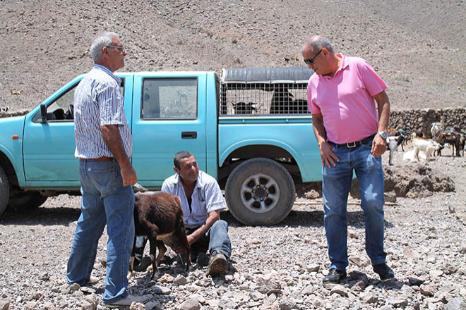 Durante el primer encuentro de marcaje, la treintena de ganaderos reunidos en el Valle de la Cueva, en Tenicosquey, han recibido la visita del presidente del Cabildo de Fuerteventura, Marcial Morales, del alcalde de Antigua, Juan José Cazorla y del concejal de Agricultura, Ganadería y Pesca, Matías Peña.