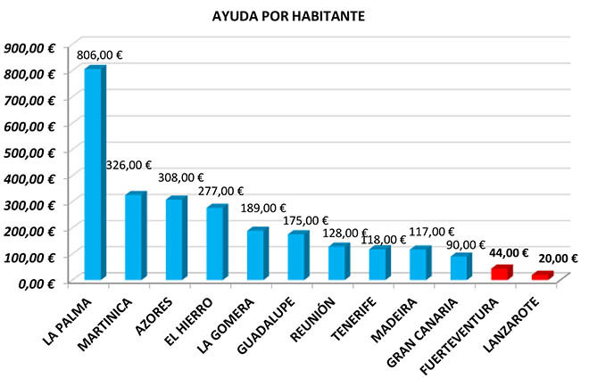 Debido a su situación geográfica (lejanía, insularidad, reducida superficie, relieve y clima adversos), las regiones ultraperiféricas (RUP) se enfrentan a problemas socioeconómicos concretos relacionados con el suministro de alimentos y los productos agrícolas esenciales para el consumo o la producción agrícola. Lanzarote y Fuerteventura cumplen todas las condiciones establecidas por la Unión Europea para recibir estas ayudas, incluso podemos añadir que nuestro clima no solamente es adverso, sino extremadamente adverso y seco, no llueve y nuestro paisaje agrícola es el principal atractivo de nuestro único medio de vida que es el turismo. Sin embargo, cada año se margina a Lanzarote y Fuerteventura de estas ayudas, aportándoles cantidades ínfimas. No existe ninguna justificación para dejar a los agricultores y ganaderos de Lanzarote y Fuerteventura fuera de las ayudas europeas a las producciones agrarias.